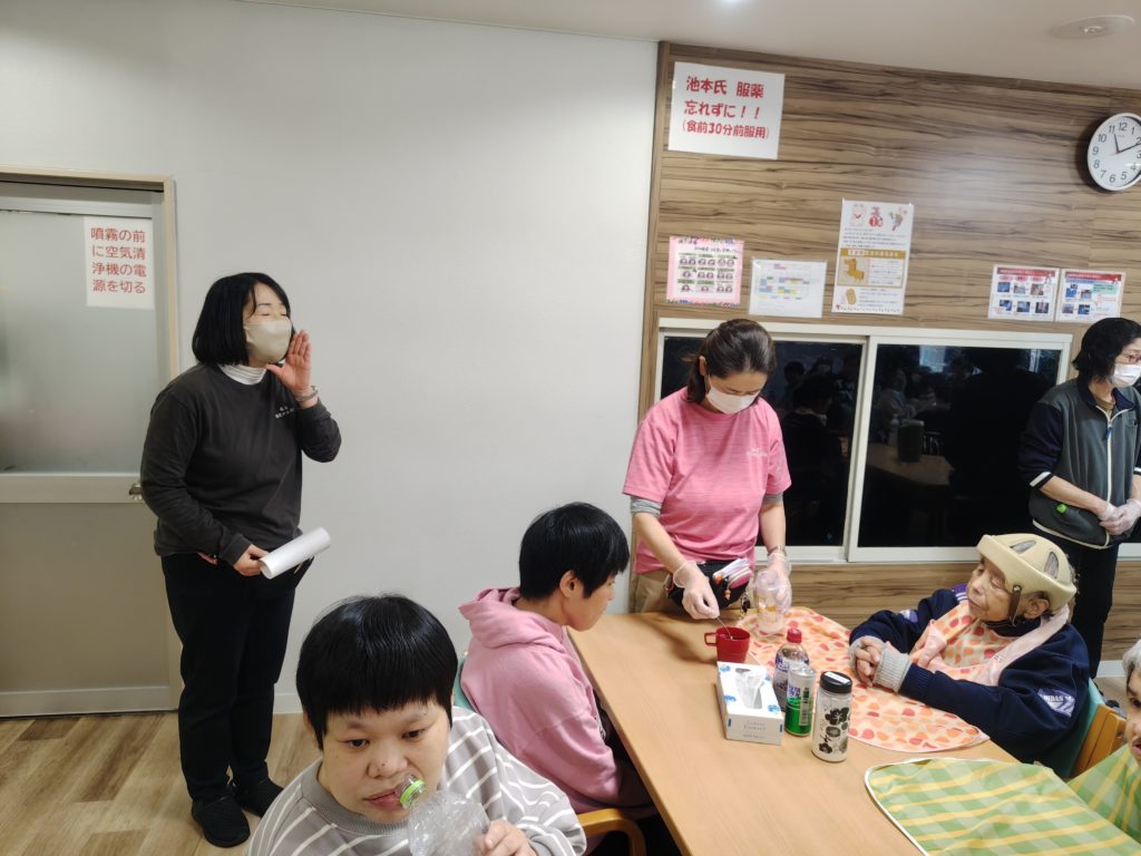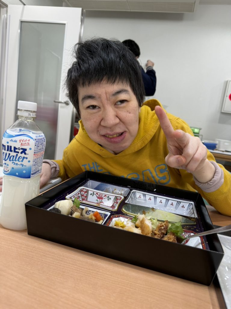 施設長から新年の挨拶があり、普段とは違う雰囲気をと豪華なお弁当を皆さんに召し上がっていただきました。