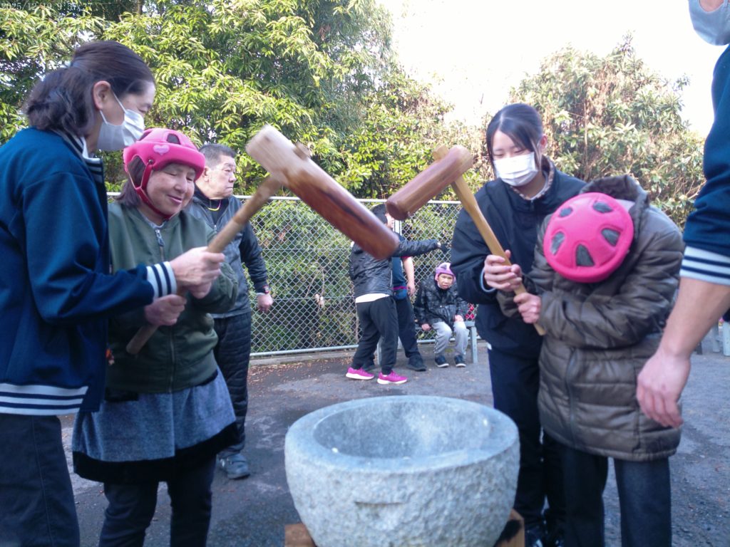 もちろん職員だけではなく、利用者の方にも餅つきをして頂きました(^○^)